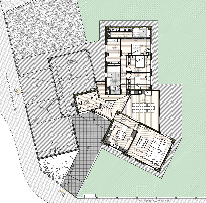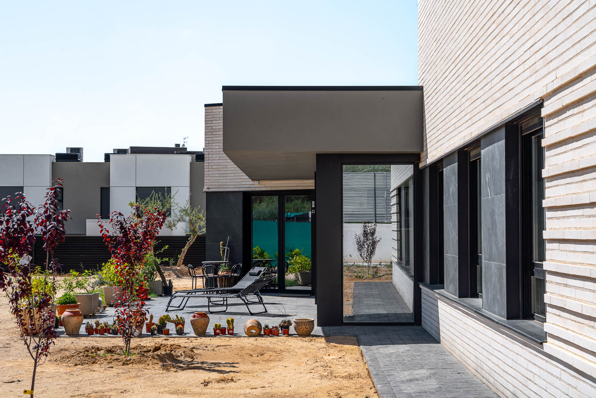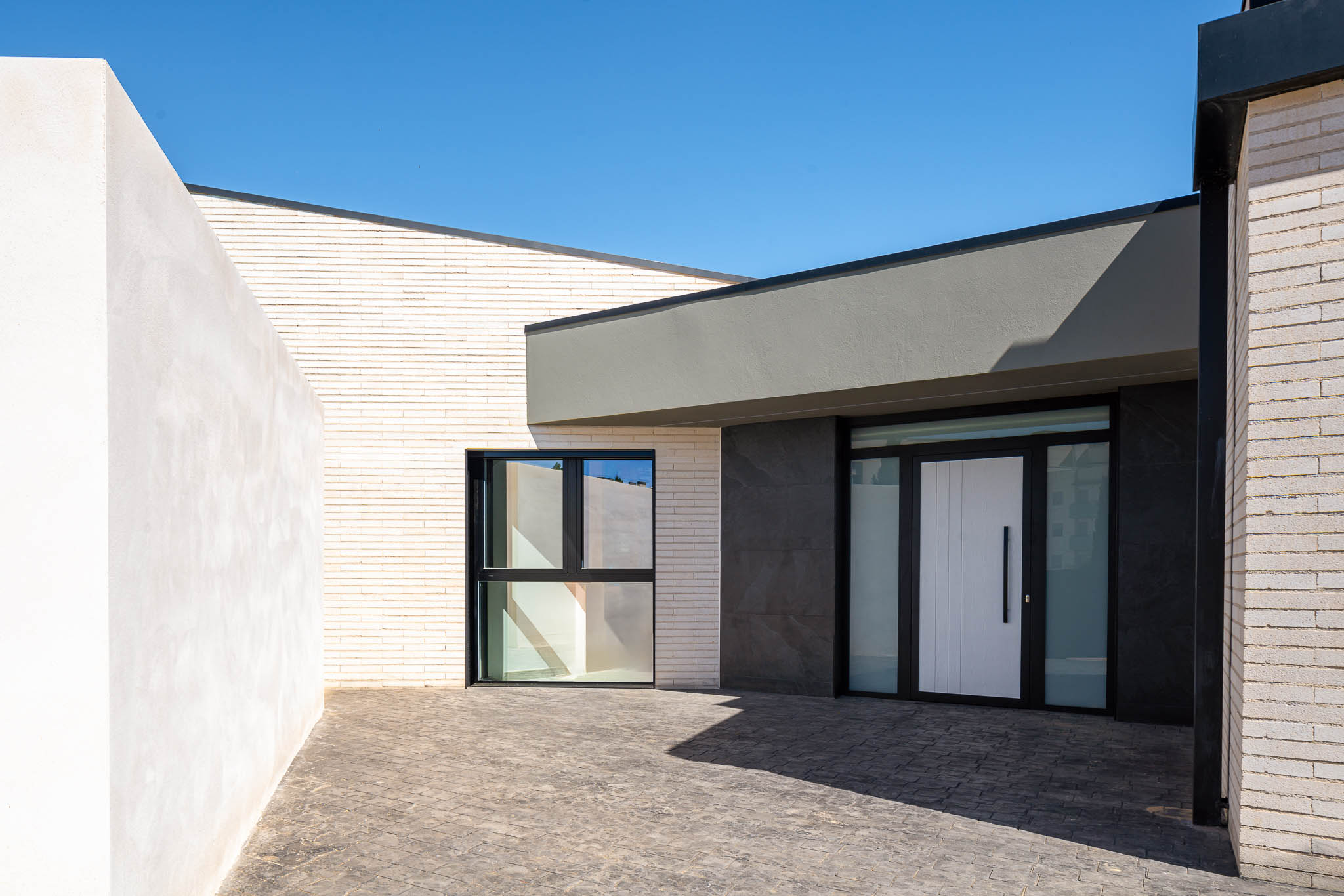 La vivienda se edifica sobre una parcela que ocupa la posición de esquina de la manzana de la que forma parte. Esta característica nos da la oportunidad de poder trabajar de forma más favorable la relación con el exterior que el promotor demanda. De este modo, se accede desde la esquina de la parcela a un patio de entrada que antecede al acceso principal a la vivienda.
