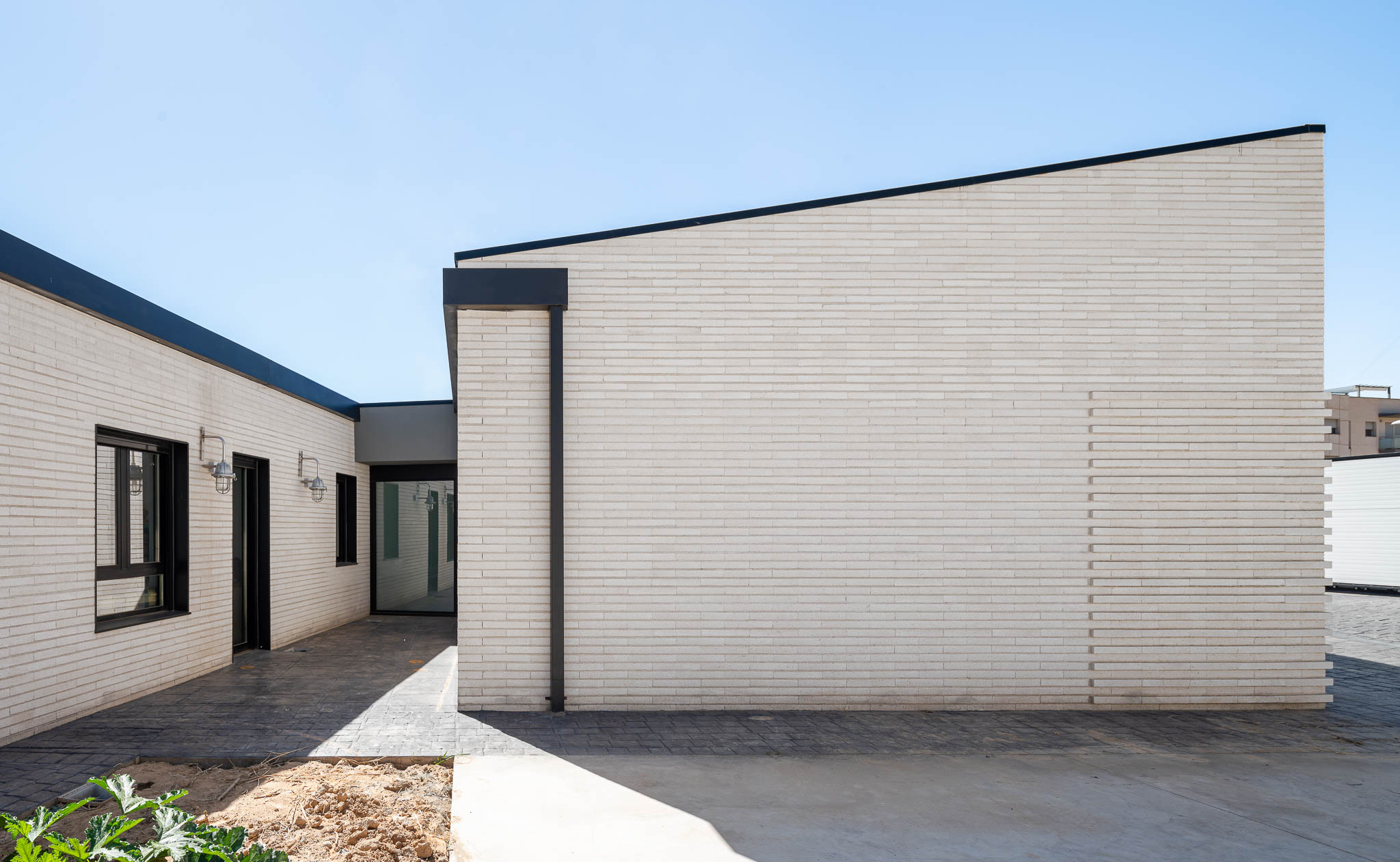 Su imagen exterior es sobria y contemporánea, a pesar de su riqueza volumétrica, materializándose en una fábrica de ladrillo de color blanco en la mayoría de sus paramentos verticales, solamente alterados por una serie de paños de revestimiento cerámico que integran las carpinterías y que contrastan con el monocolor de la fachada.