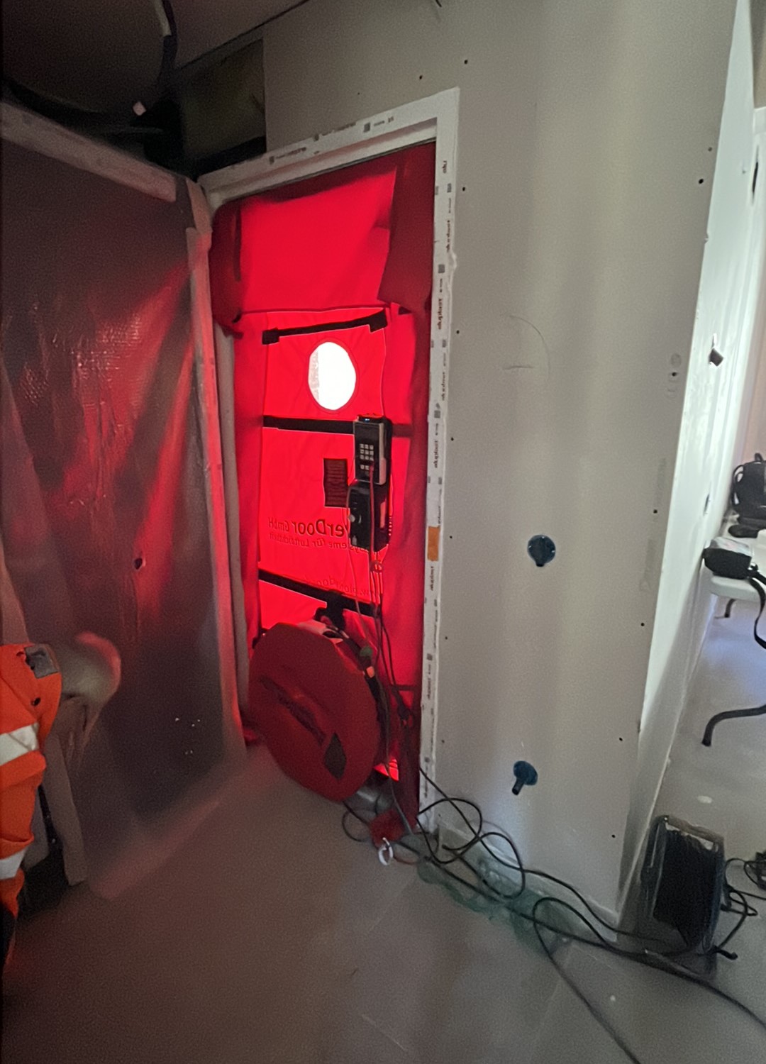 -determinación de una envolvente hermética y aplicación de soluciones constructivas que garanticen la hermeticidad al paso del aire en esta línea de cerramiento (se establece como objetivo tasa de infiltraciones n50>1,04)