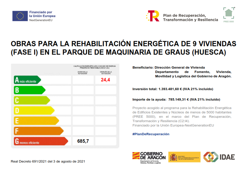 Rehabilitación energética de 9 viviendas unifamiliares en el Parque de Maquinaria de Graus (Huesca).
